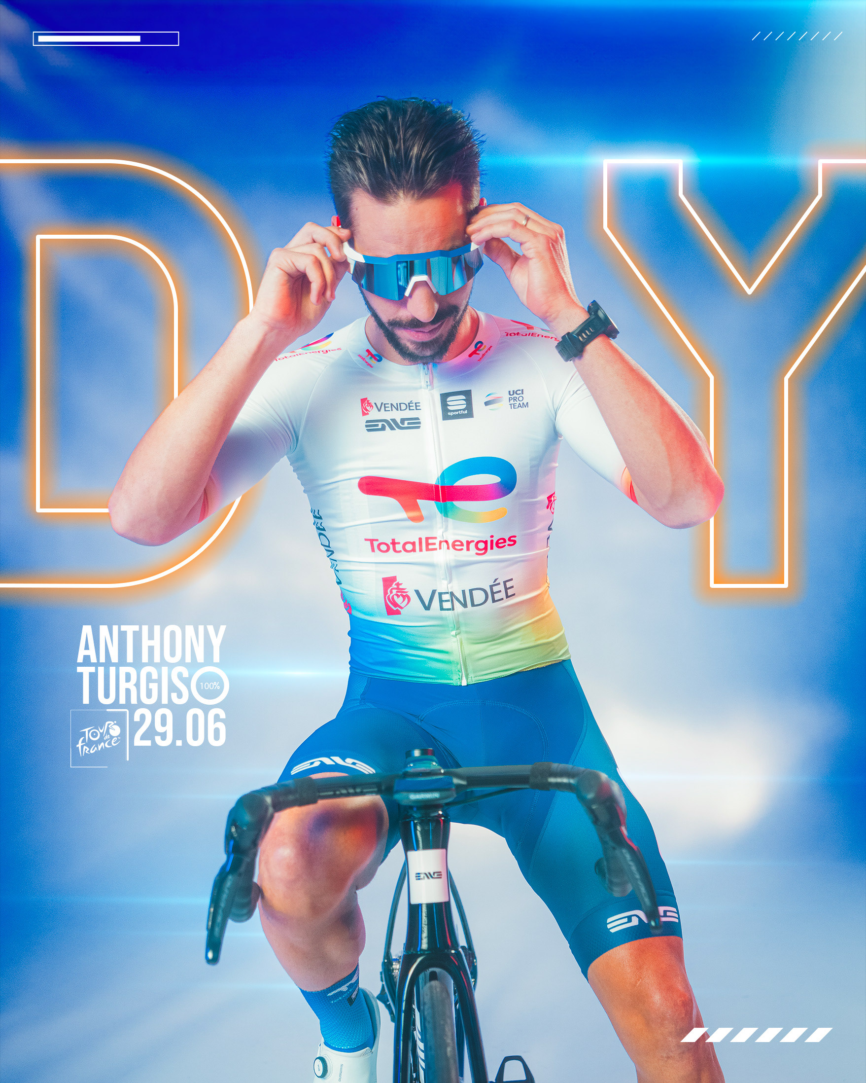 J’ai eu comme mission de définir et de développer la nouvelle direction artistique de l’équipe cycliste professionnelle TotalEnergies, en assurant la création et l’adaptation de l’ensemble des formats (affichage, social media, site internet, activations événementiels, etc), profitant notamment d'une forte visibilité pendant le Tour de France.